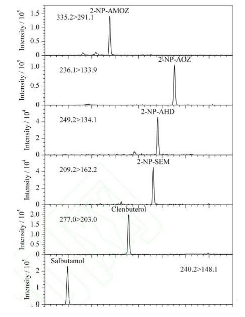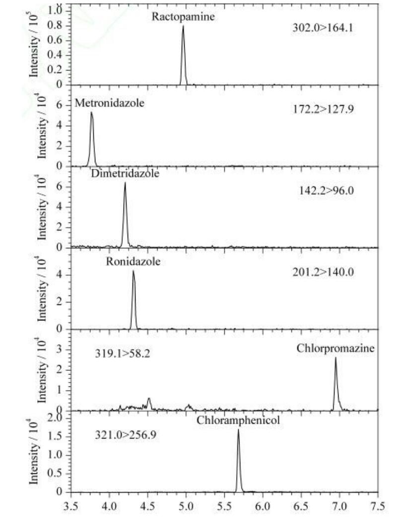 App ID: FLM-T240003 Titank C18 串聯(lián)質(zhì)譜法 12 種獸殘分析 (甲硝唑氯霉素氯丙嗪克侖特羅沙丁胺醇等) 色譜柱:Titank C18 3u 100*2.1mm 貨號:FMD-5559-BONU 流動相:A 乙腈 B 0.1%甲酸 流速:0.3ml/min 進樣體積:5 μL 柱溫:40℃
