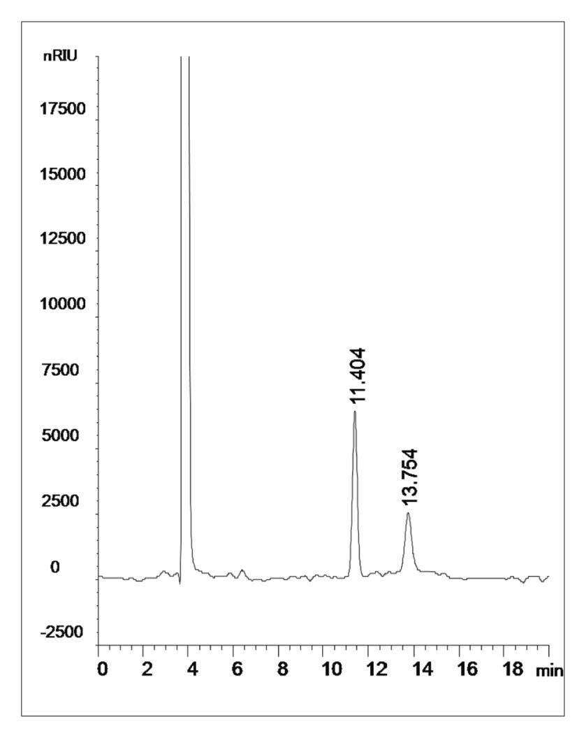 色譜條件: 乳糖:理論塔板 9762 對稱因子 1.15